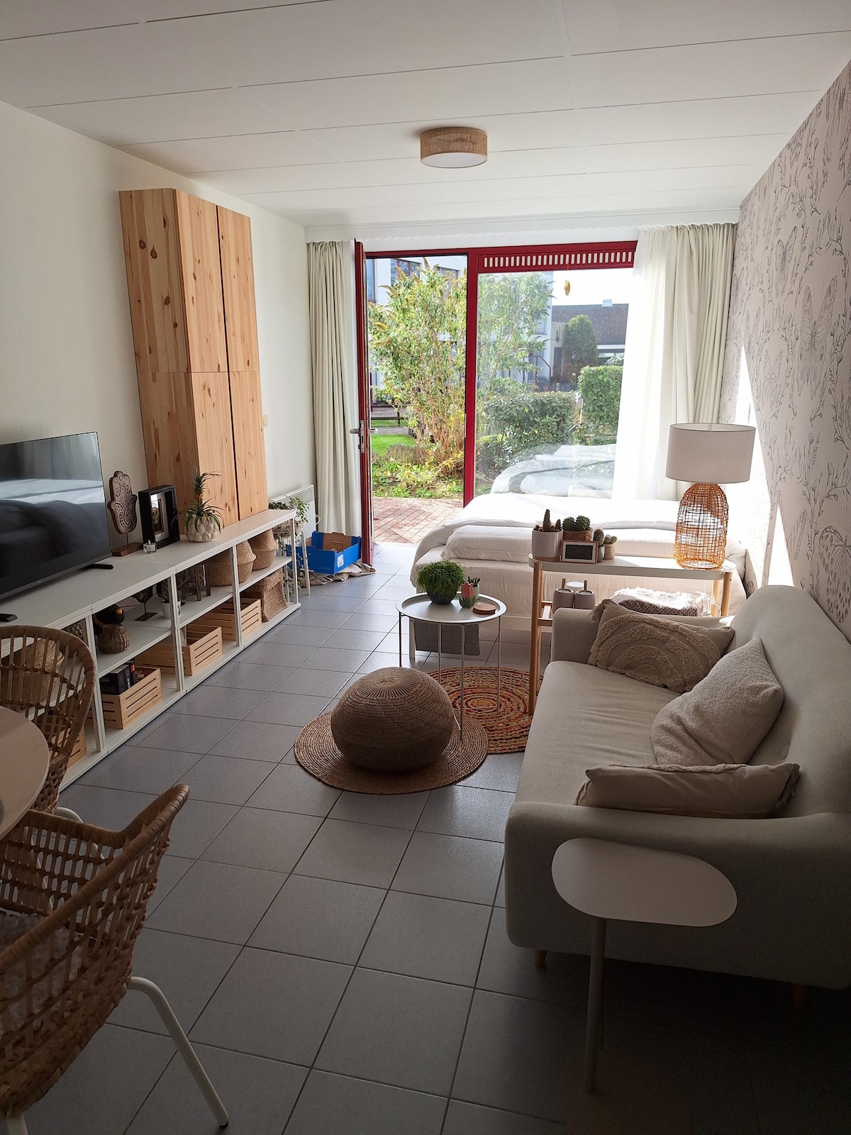 We would like to welcome you in our completely new 4 star holiday home, equipped with its own terrace, bathroom, kitchen and WIFI. Countryside area just next to Bruges. 't Huys is on the ground floor and has 2 bedrooms, sitting and dining area and bathroom. The attractive decor and spacious rooms bring cosiness and maximum relaxation. You can make use of a wellness area with rain shower, sauna and wood-fired hot tub at additional charge. 't Huys can accomodate 2 adults and up to 3 children.