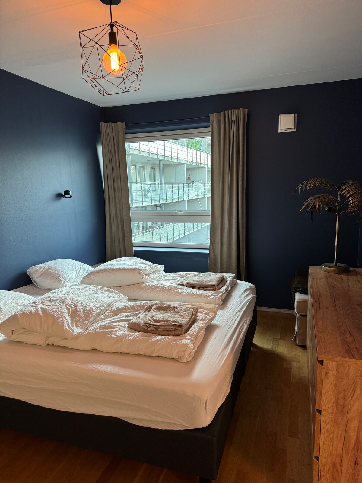 🌟 The entire apartment is at your disposal – with bed linens, towels, Wi-Fi, and all basic essentials included. Parking is available, and there is step-free access to the apartment. 🏡 Make yourself at home and enjoy your days and evenings in the heart of Leirvik, with cafés, shops, a gym, and restaurants just a stone’s throw away. 🎨 The apartment is decorated with wall art, beautiful pictures, and sculptures, creating a unique and welcoming atmosphere.