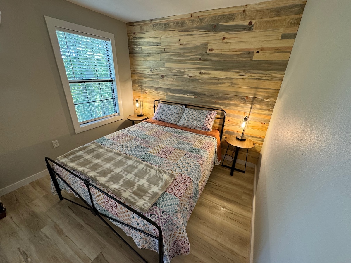 Relax in this rennovated studio near the Beaver Shores community and Beaver Lake. The house is a quick drive away from the lake, 10 minutes from downtown Rogers, 20 minutes to the Walmart Amp, and is the perfect getaway for those looking to decompress. The Shack is a fully functional living space - complete with a driveway long enough to back in your boat, WiFi, full kitchen and bath, laundry, pull-out sleeper couch, two TVs and a separate master bed area with a beautiful pine feature wall.