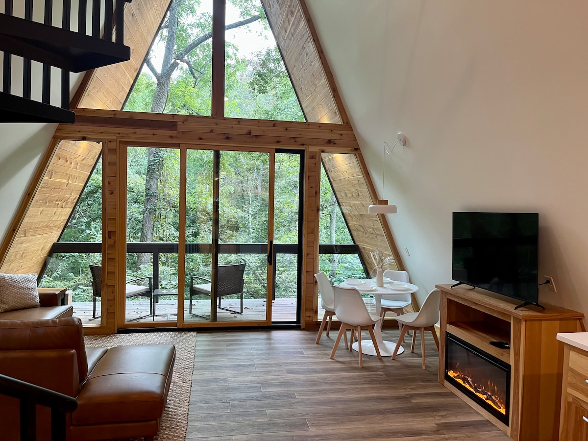 Welcome to Pedal and Perch, a custom-designed and built accessory dwelling cabin just minutes from downtown Bentonville, AR, Walmart HQ, and miles of incredible mountain biking. Enjoy a serene setting that tucks you among the trees and makes you feel like you are staying in your own treehouse. The cabin features a custom kitchen, one bathroom, a queen bed in the loft, a pullout sofa on the primary floor, and your very own outdoor bathtub looking in to the valley below.