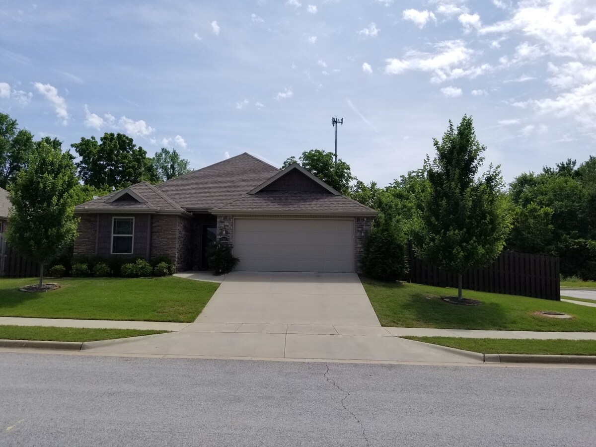 This fully stocked home is conveniently close to all things Northwest Arkansas in a quiet neighborhood. Just down the road from Top Golf, the AMP and the promenade mall, you can be anywhere within minutes. Comfortable for weekend get away with friends, family friendly and business travel ready. The fenced backyard is an oasis with a gas grill, firepit, benches, and table. We welcome pets as well! Garage is great for bikers and conveniently just down the road from the Greenway bike path.