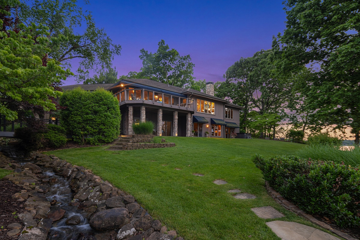 私人半岛、热水浴缸、湖景、台球桌