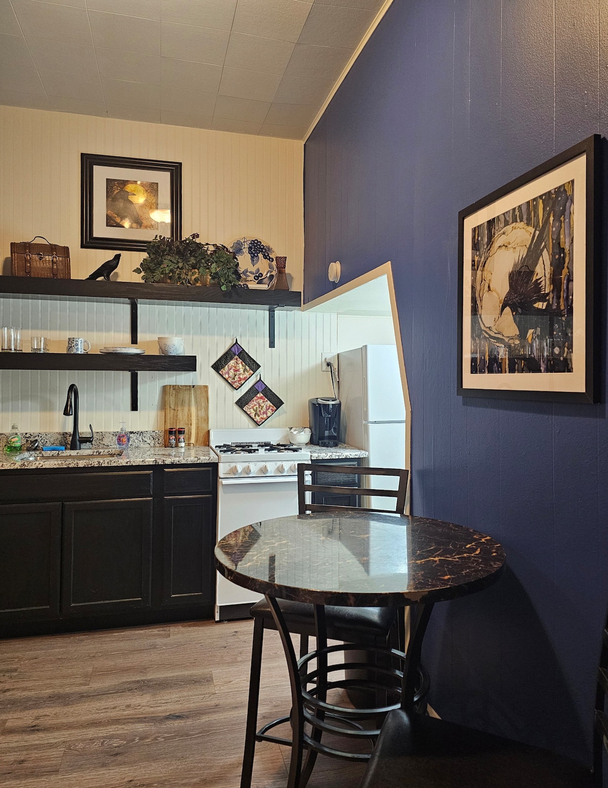 A suite in a Victorian house one block from the beautiful Bentonville square, with fine dining, pubs, music venues, quaint shops, art galleries, coffee shops, food trucks, bicycle shop/rentals, splash park, playground, and a grocery store. The Razorback Greenway runs along the side of the property. Crystal Bridges Musieum of American Art is a mile walk or bike ride north on the Razorback Greenway. The Walmart Home Office is 1.2 miles away and no major roads to cross to get there.