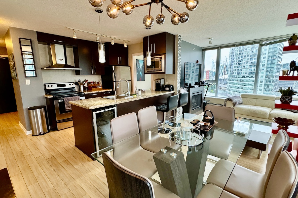 Welcome to this charming 2-bedroom retreat in the heart of Gastown, just minutes from BC Place and Rogers Arena. This fully renovated, spacious mid-century–style apartment features a queen bed, a twin bed, and a sofa bed, comfortably accommodating up to 4 guests. The warm, inviting space includes a well-equipped kitchen, AC, Wi-Fi, parking, and a dedicated office, perfect for work or leisure. Ideal for families, friends, or couples, with 24/7 host support to ensure a smooth and worry-free stay.