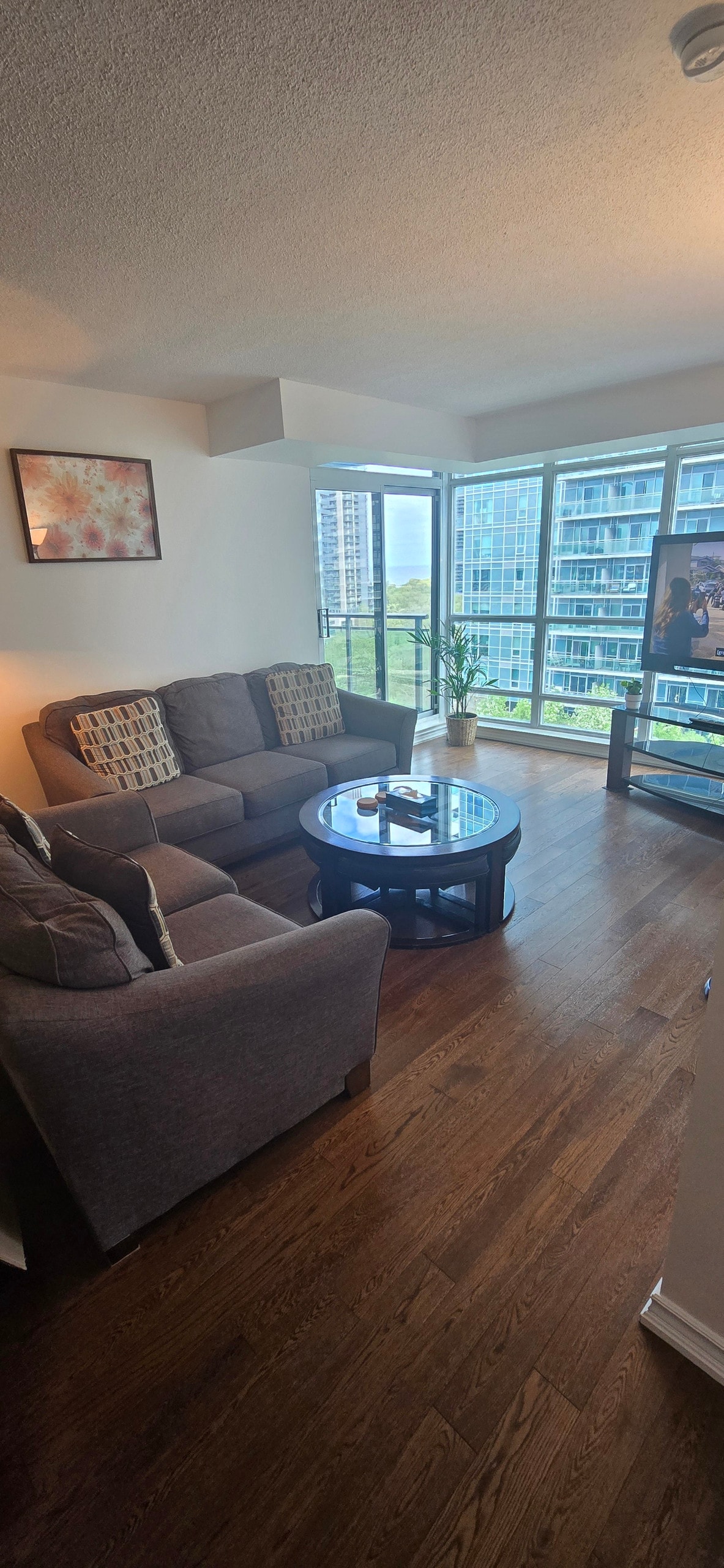 This spacious & stylish studio offers a stunning view of the city, CN Tower and 5 min walk to the lake, and great amenities in the building (gym, pool, hot tub, sauna, co-working, etc.). The unit is fully furnished and equipped with smart TV, ensuite laundry, high speed WIFI, and daily essentials. It's close to Bill Bishop Airport, highway and public transit, with plenty restaurants/bars, cafes and grocery stories. Vibrant social life yet still quiet from the noises.