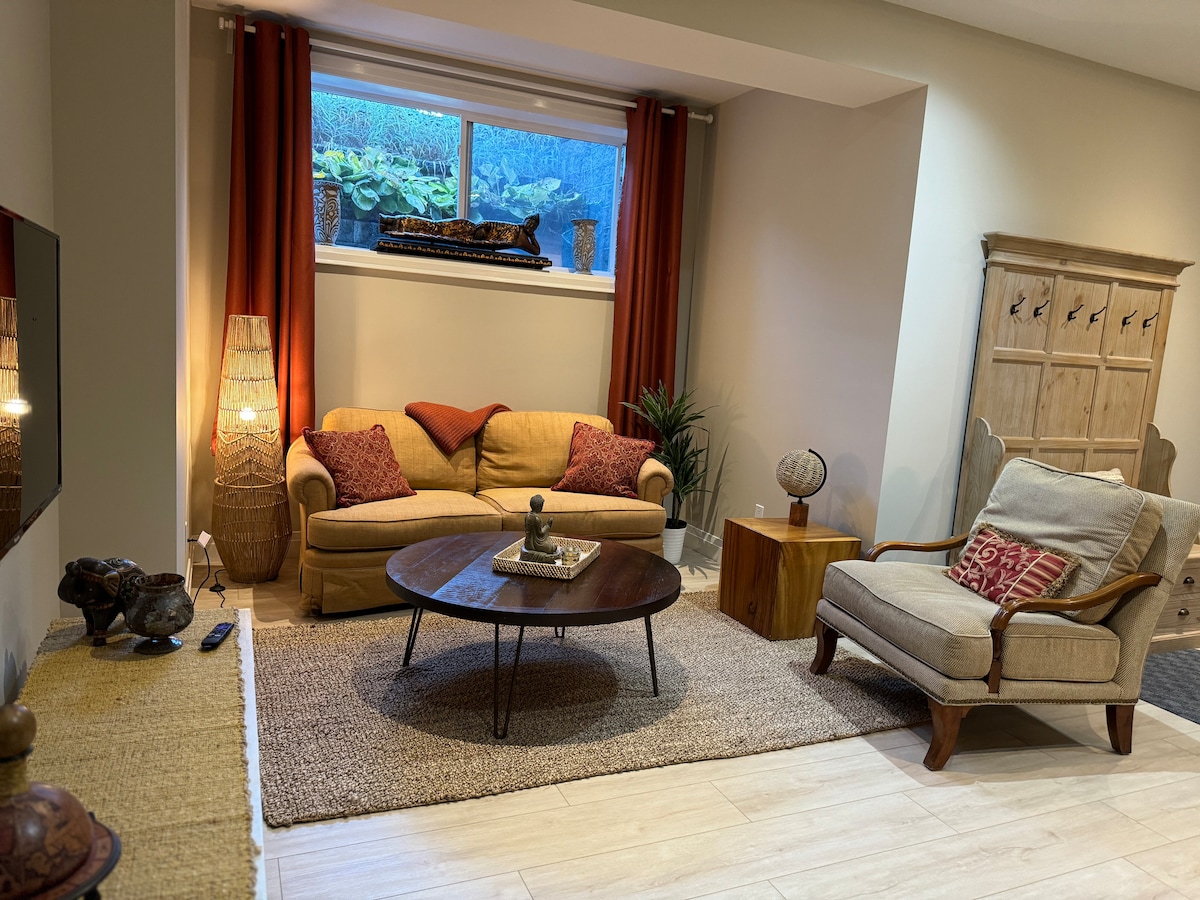 舒适的地下室套房,距离市中心20分钟车程