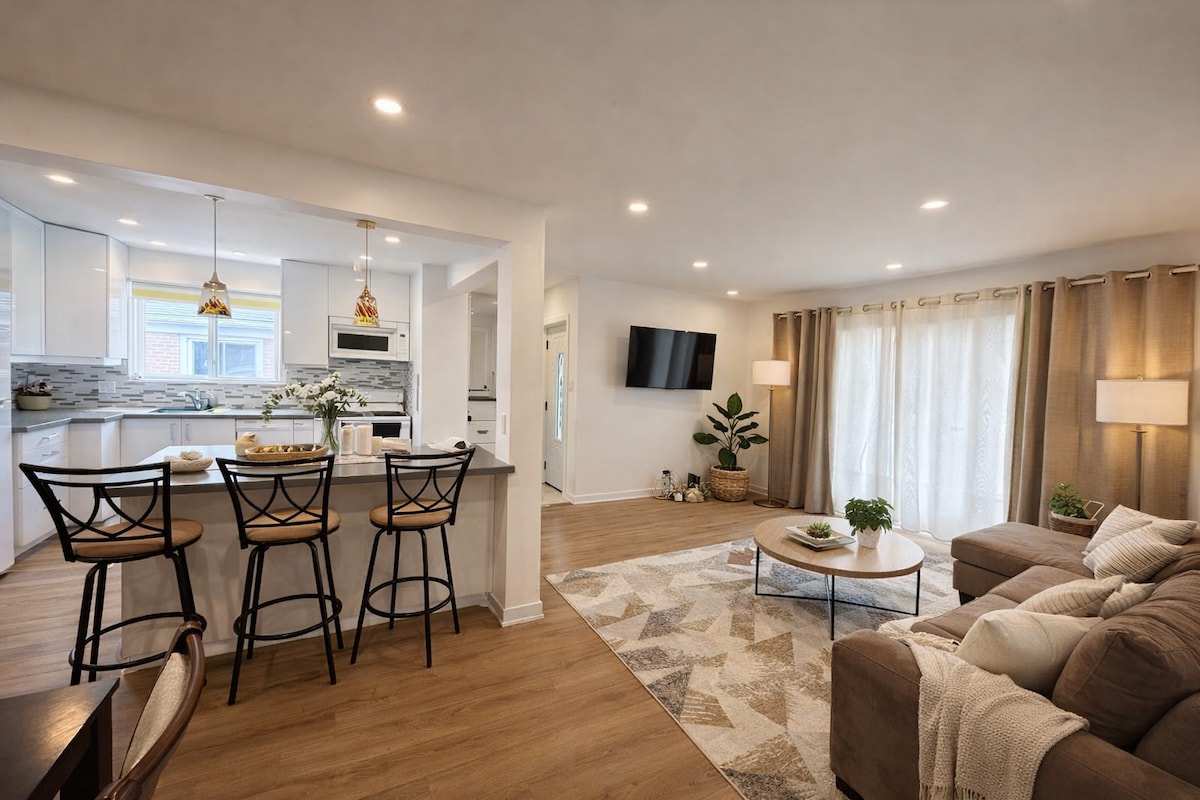 Welcome to our modern, fully-equipped unit that features a spacious backyard. Whether you are traveling for business or pleasure, our unit is the perfect base. The location provides convenient access to everything, just 10 minutes from downtown Toronto and the airport, 5 minutes from Lakeshore Blvd, Port Credit, and the GO stn, and steps away from public transportation. Additionally, you will find a plethora of local restaurants, shops, a scenic walking trail, and beautiful parks in the area.