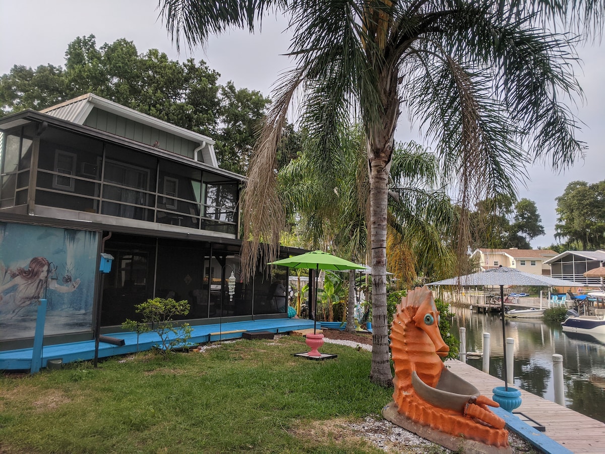 Embellish in this once in a lifetime, perfect getaway on Weeki Wachee River. A local favorite! Fully furnished pirate themed, 500 sq ft home with 1 bedroom 1 bath full kitchen and sofa bed. It has everything needed to create unique memories. Swim with manatees in the crystal clear spring-fed river. Have your coffee on the porch over looking the water and your favorite drink around the fire at night. Kayaks are included. Minutes from Weeki Wachee mermaids, Pine Island Beach and Homosassa Springs.