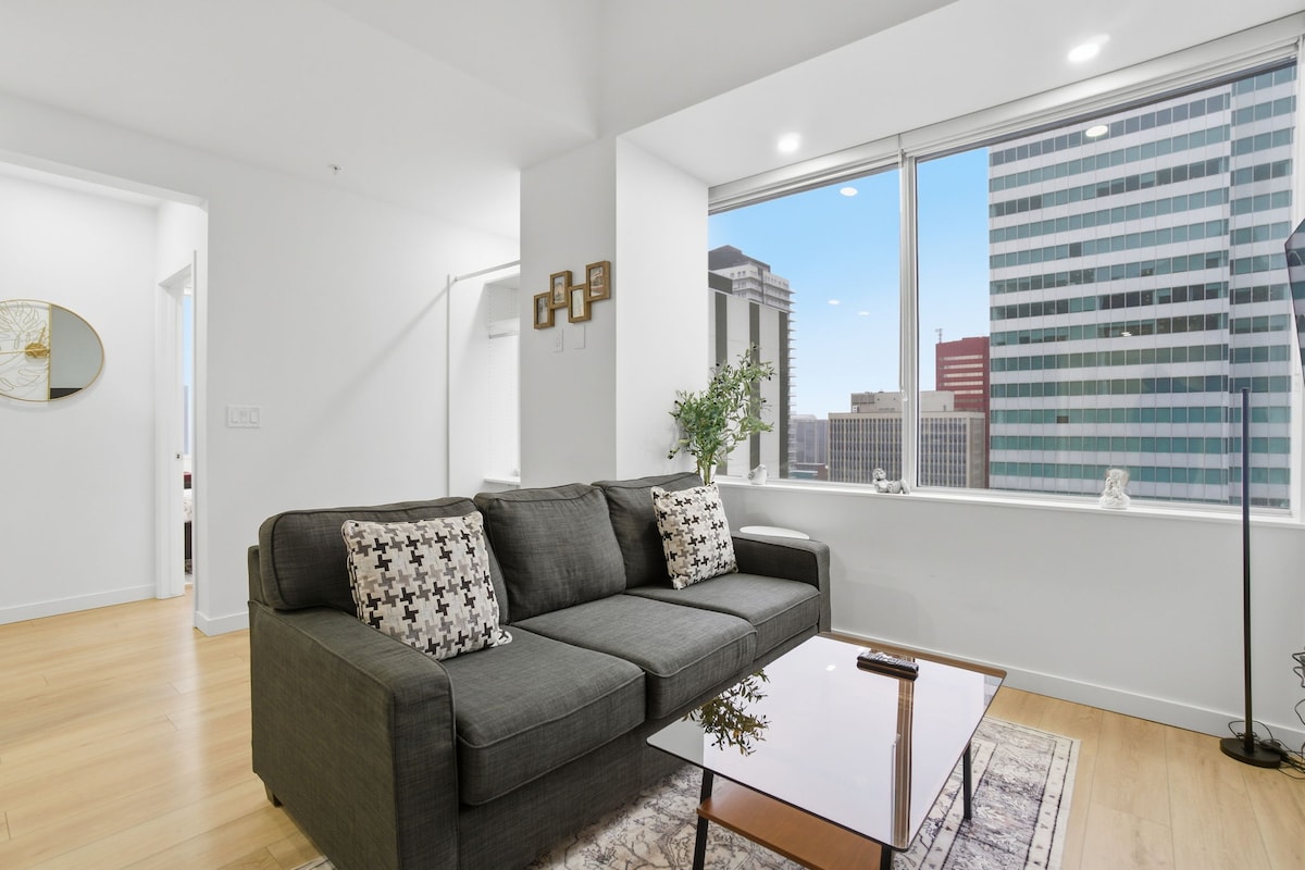 **Ask us about our Spring Pricing! Located in the heart of downtown, atop one of the city’s most extravagant buildings, lies your Deep Blue Oasis. Perfectly positioned in the center of the city— surrounded by the finest restaurants, pubs, diners, and seasonal events, all within walking distance — giving you the full downtown experience from the moment you arrive. Inside, it’s fully equipped with everything you need for an experience worth remembering, including: