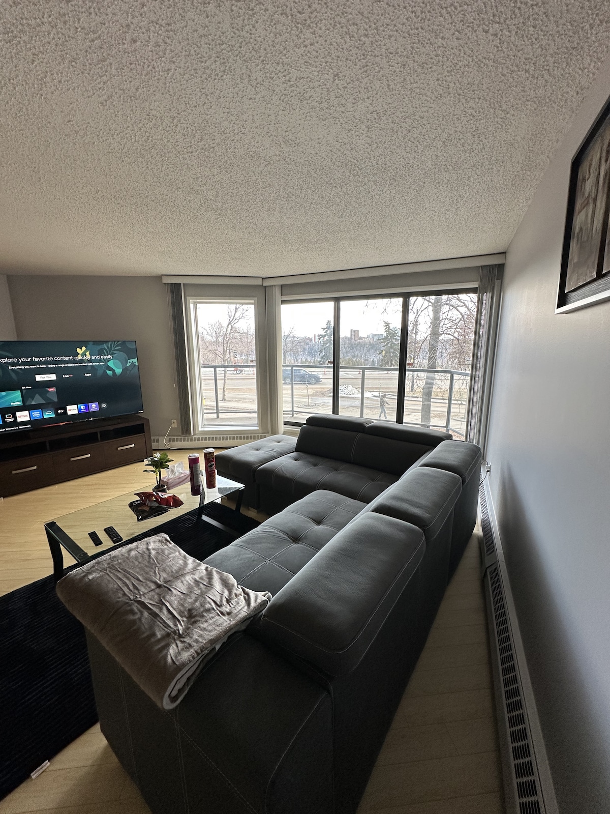 Welcome to our cozy and affordable apartment, perfect for budget-conscious travelers! If you're traveling for business or attending an event at Rogers Place, this is a great central apt within minutes walk from Rogers Place, Grant MacEwan University, and the Edmonton CityCentre shopping mall and restaurants. FREE PARKING Roger Arena 3 min walk Mac Ewan University 4 min walk Train Station 3 min walk FYI: this is downtown prime location, there will be some NOISE and FOOT TRAFFIC.