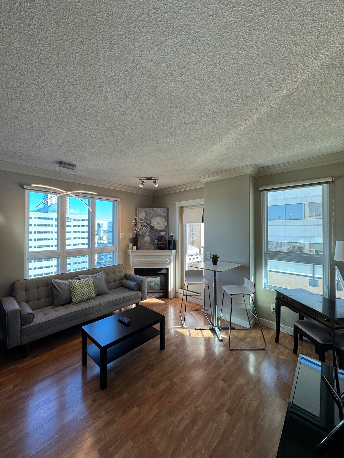 Modern A/C suite in Edmonton’s Ice District, steps from Rogers Place—ideal for Oilers games, concerts, conferences, and business stays. ✔ Overlooks Rogers Arena / Ice District ✔ 2 Bedrooms | 2 Bathrooms ✔ 2 Queen Beds + L-Shaped Sectional ✔ Air Conditioning (A/C) ✔ In-Suite Laundry ✔ Fully Equipped Kitchen ✔ Fre Wi-Fi ✔ SMART TV (Netflix & Prime Video – log in with your own accounts) ✔ Professionally Cleaned ✔ 1 Heated Underground Parking Stall ✔Secure FOB Entry ✔ Month-to-Month Stays Available