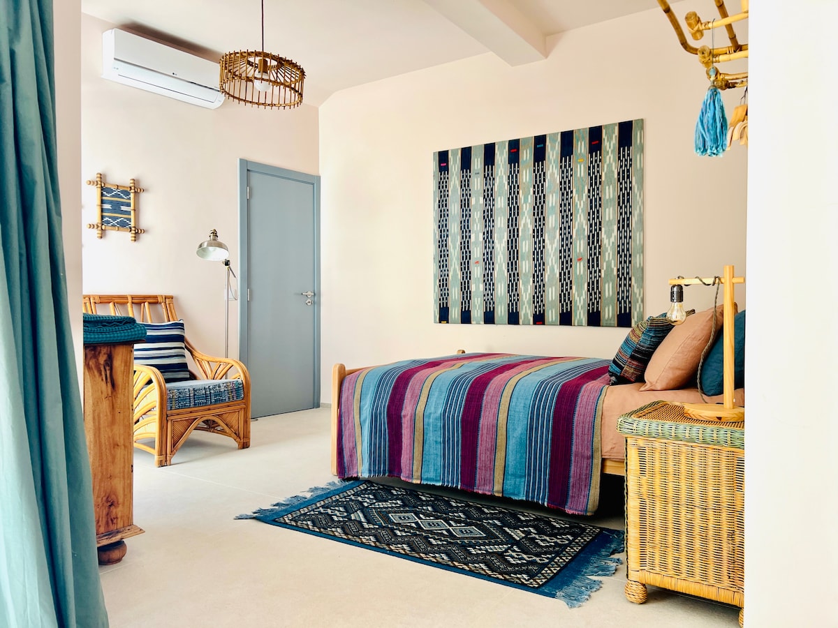 Nestled in the rolling hills of Aljezur, Casa Stephanie is a holiday home on Portugal’s West Algarve coast. Set among whitewashed cottages and cobbled streets, this two-bedroom hideaway has been thoughtfully curated with locally sourced furnishings to handcrafted decor. The home’s iconic blue windows and white shutters frame breathtaking views of swaying trees and golden sunsets. Step outside to a lush private garden, where bougainvillea and yuca trees create a tranquil oasis.