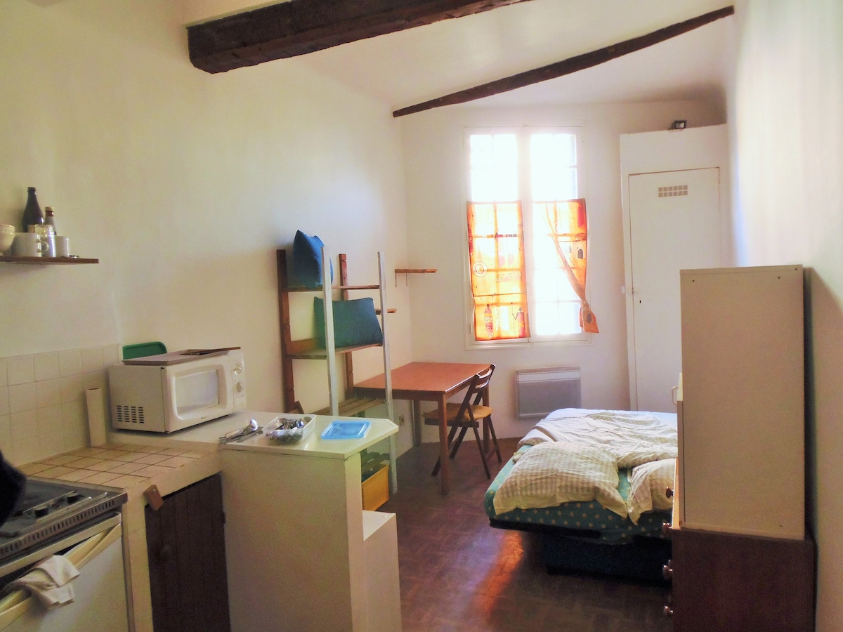A deux pas des secteurs animés de la place des Cardeurs (parking) et de l'Hôtel de Ville Studio 17m2 avec salle de bain et coin cuisine, frigo, four micro ondes. Deuxième étage d'un immeuble rénové. Idéal pour découvrir ou revoir Aix pour un court séjour. ATTENTION: Arrivée possible uniquement de 12h à 20h.