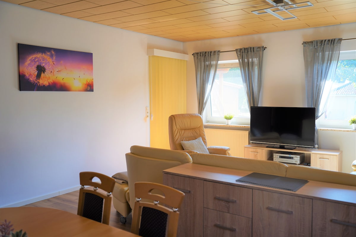 Welcome directly at the Steinhuder Meer in a very quiet location. The apartment with separate entrance offers a fully equipped kitchen, a large shower with separate toilet and a private sauna. The accommodation is located directly on the circular path around the Steinhuder Meer. A public access to the lake is 400m away. Here you can get started with our SUPs. With our bikes you can reach Steinhude in 15 minutes. There is enough space for 2 adults and 1-2 children.
