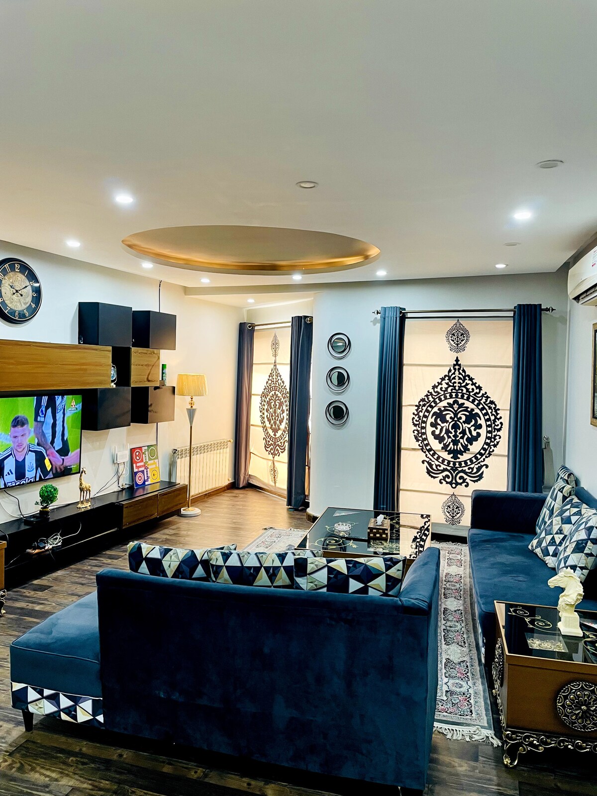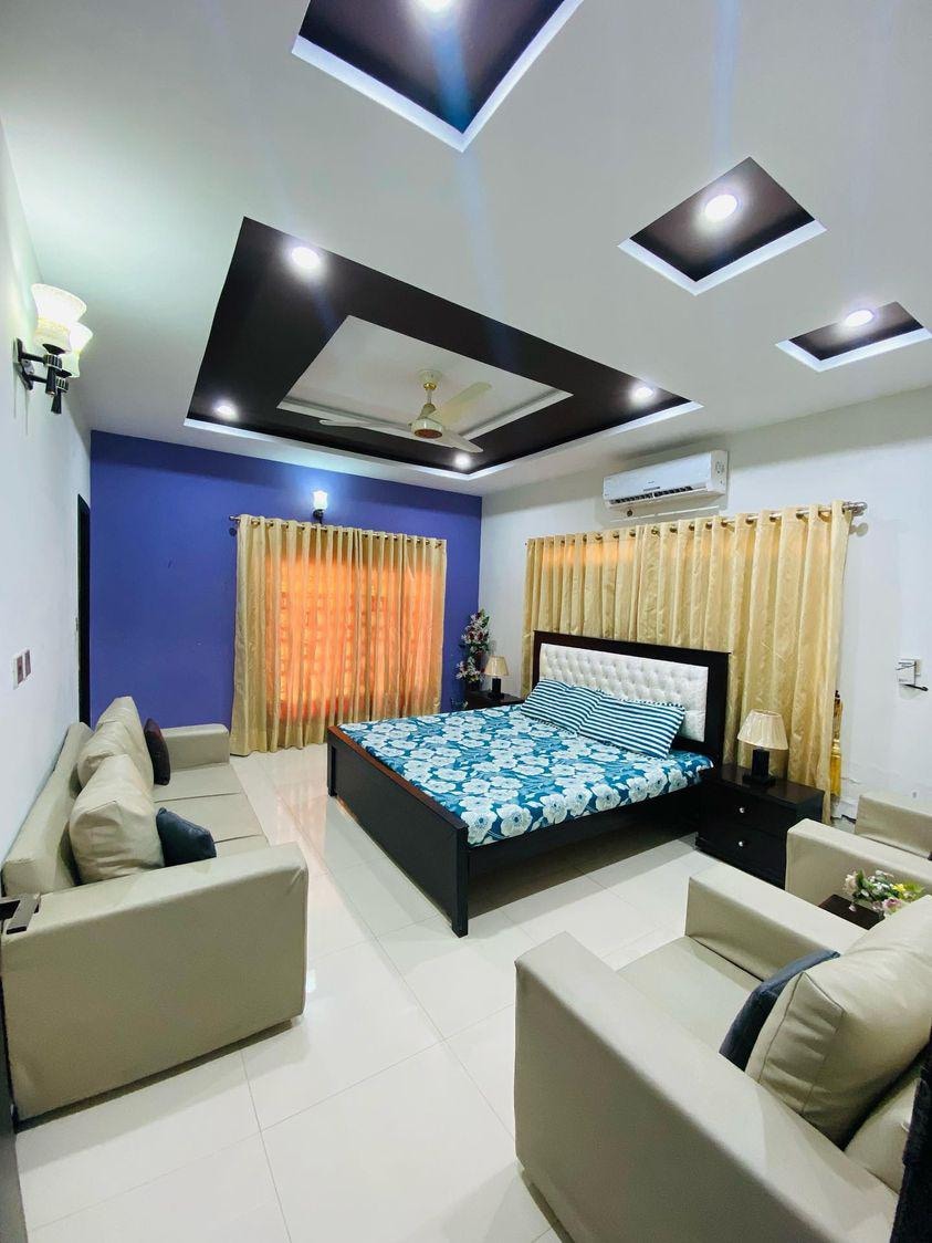 Welcome to Global Glory Holiday Homes ®️. Stay at Relaxing and Family Friendly 2BR Flat in Kashmir Heights, most desirable address in Citi Housing, Jhelum. This luxury 2-bedroom apartment features 2 king beds, modern baths, a family kitchen, cozy lounge, AC in all rooms, UPS backup, WiFi, smart TV, and free parking. Enjoy garden views and walkable access to Citi Theme Park, Opera Cinema, restaurants, banks, and supermarkets. Perfect for families, couples, and business stays. Home Away from Home