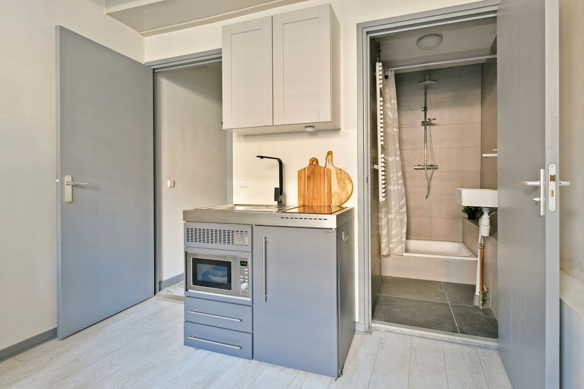 A truly unique experience. Brand new, fully fledged studio apartment with ensuite bathroom, aboard a former freight ship turned into a houseboat. Breakfast, king-size bed (180x200), 40 inch TV with Chromecast, water cooker, hair dryer, .., everything is included. The KNSM Island is one of the hidden gems of Amsterdam, quiet and peaceful, but close to the city center. It is possible to sit outside on a private terrace and jump in the water for a swim. The sunsets are pretty spectacular as well.