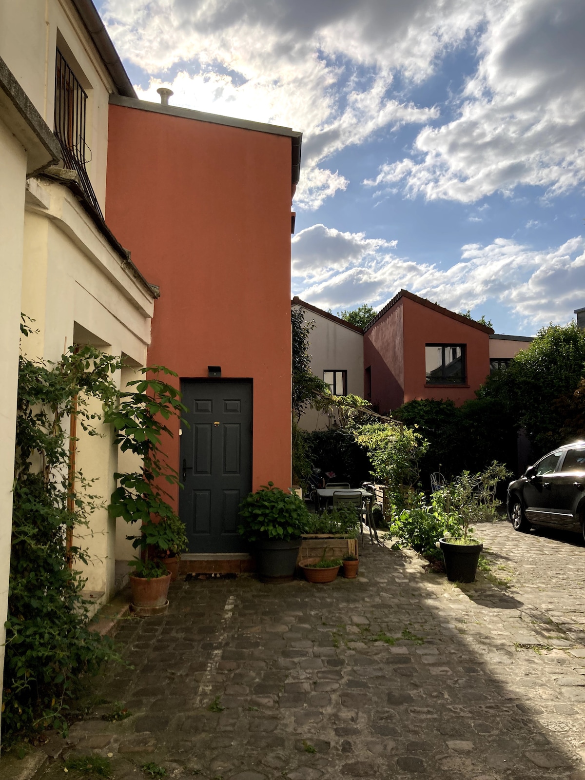 My lovely brick home is located next to Paris' Flea Market. The house stands in a private bucolic alley. The ground floor consists of the living room, the dining area, the kitchen and the garden-terrace. The second floor is made of two bedrooms, a bathroom and separate toilets. On the third floor, the attic has been turned into a large bedroom and wardrobe. You'll probably meet my friendly car, Moki !