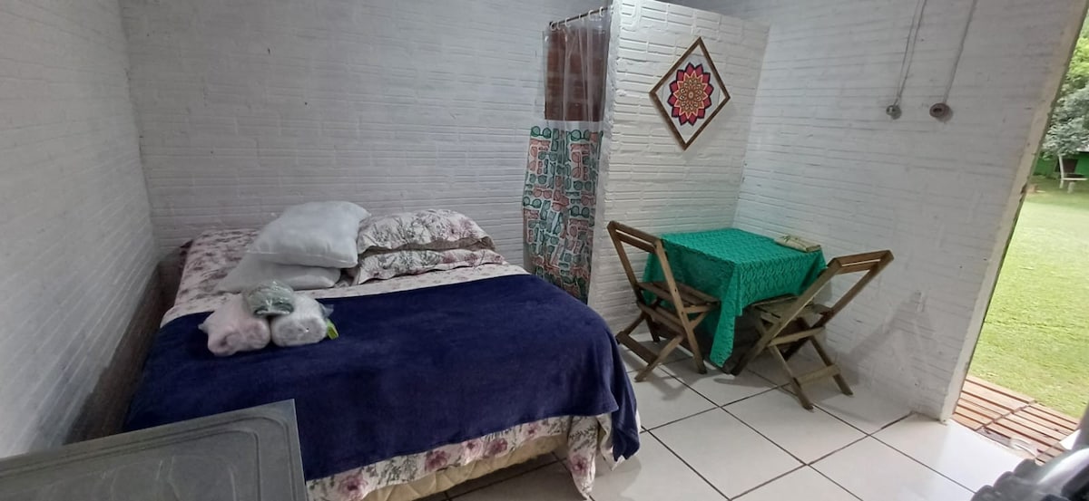 Cabana em meio a natureza, com cascata, açudes, campo de futebol, trilha para caminhada e muito mais. Crianças até seis anos não será cobrada estadia, não coloque na aba de hospedes, de 6 até 12 anos será cobrado somente a metade do valor diretamente no local. Trazer roupas de cama, toalhas e itens de Higiene! No local temos lanches e refeições prontas para venda, se quiserem cozinhar tem que trazer os alimentos. Infelizmente não temos sinal de telefone na localidade, apenas wi-fi.
