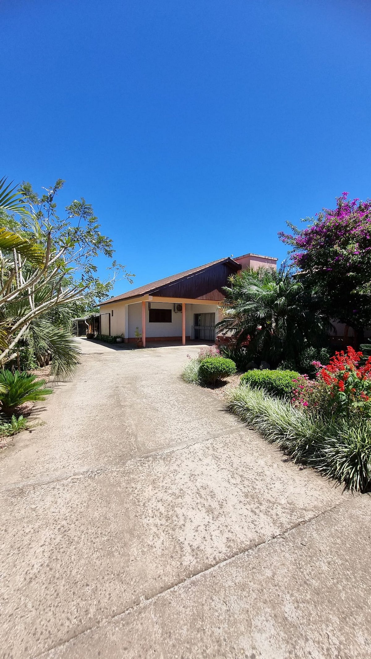 Desfrute de uma casa completa em ótima localização, perto de todas as conveniências de Rolante. A propriedade tem um belo jardim com uma jabuticabeira e estacionamento privativo. No pátio, vivem dois cães dóceis: Lucky, que é cego e tranquilo, e Sorriso, que adora a companhia dos hóspedes. Se preferir que os animais não entrem na casa, mantenha as portas de vidro fechadas, pois o Sorriso pode tentar se juntar aos visitantes.