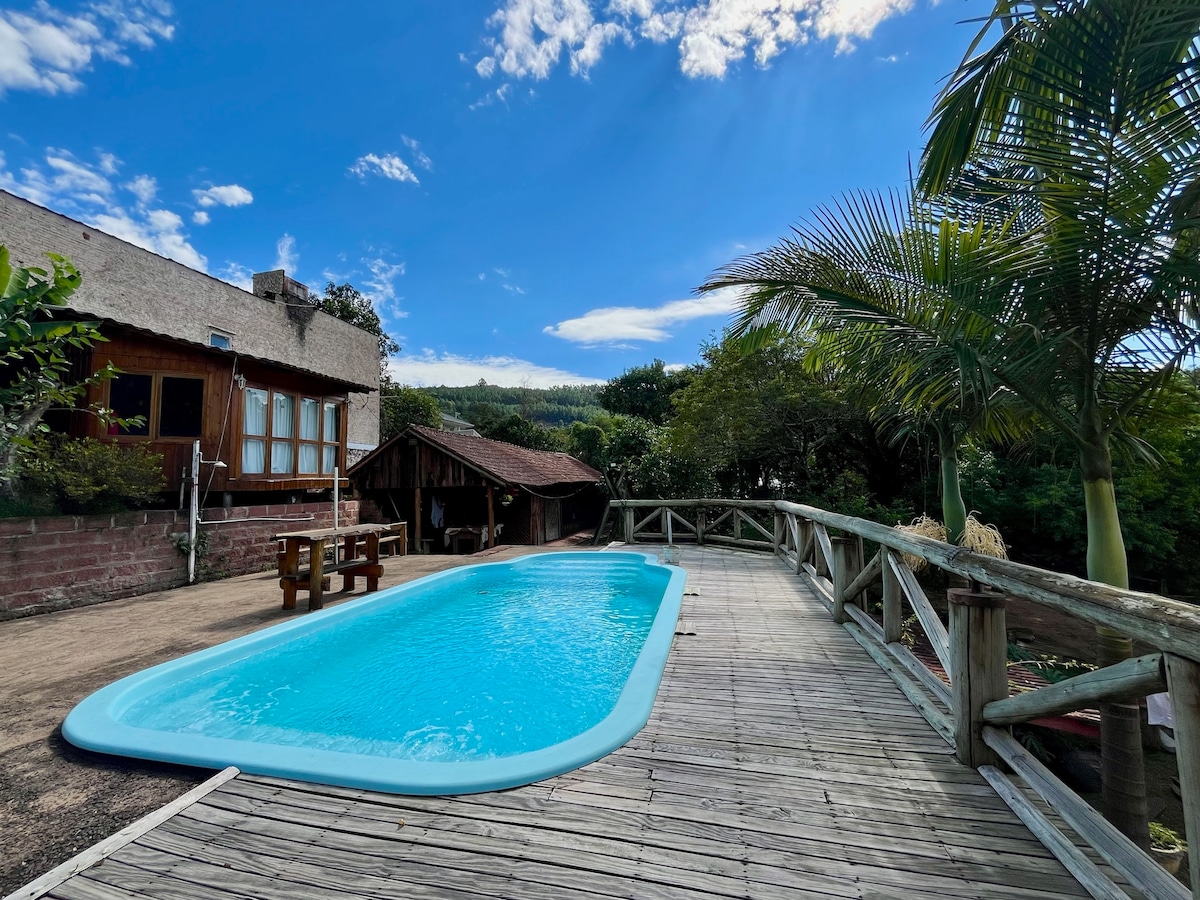 A Casa da Piscina é um refúgio aconchegante perto do centro de Rolante, ideal para relaxar com privacidade. Localizada nos fundos do terreno, conta com uma área externa charmosa e piscina. Os proprietários moram na casa da frente e estão disponíveis para ajudar. Há um pet dócil no local, que fica preso durante a estadia dos hóspedes. Perfeita para quem busca conforto e conveniência em um ambiente tranquilo e acolhedor!
