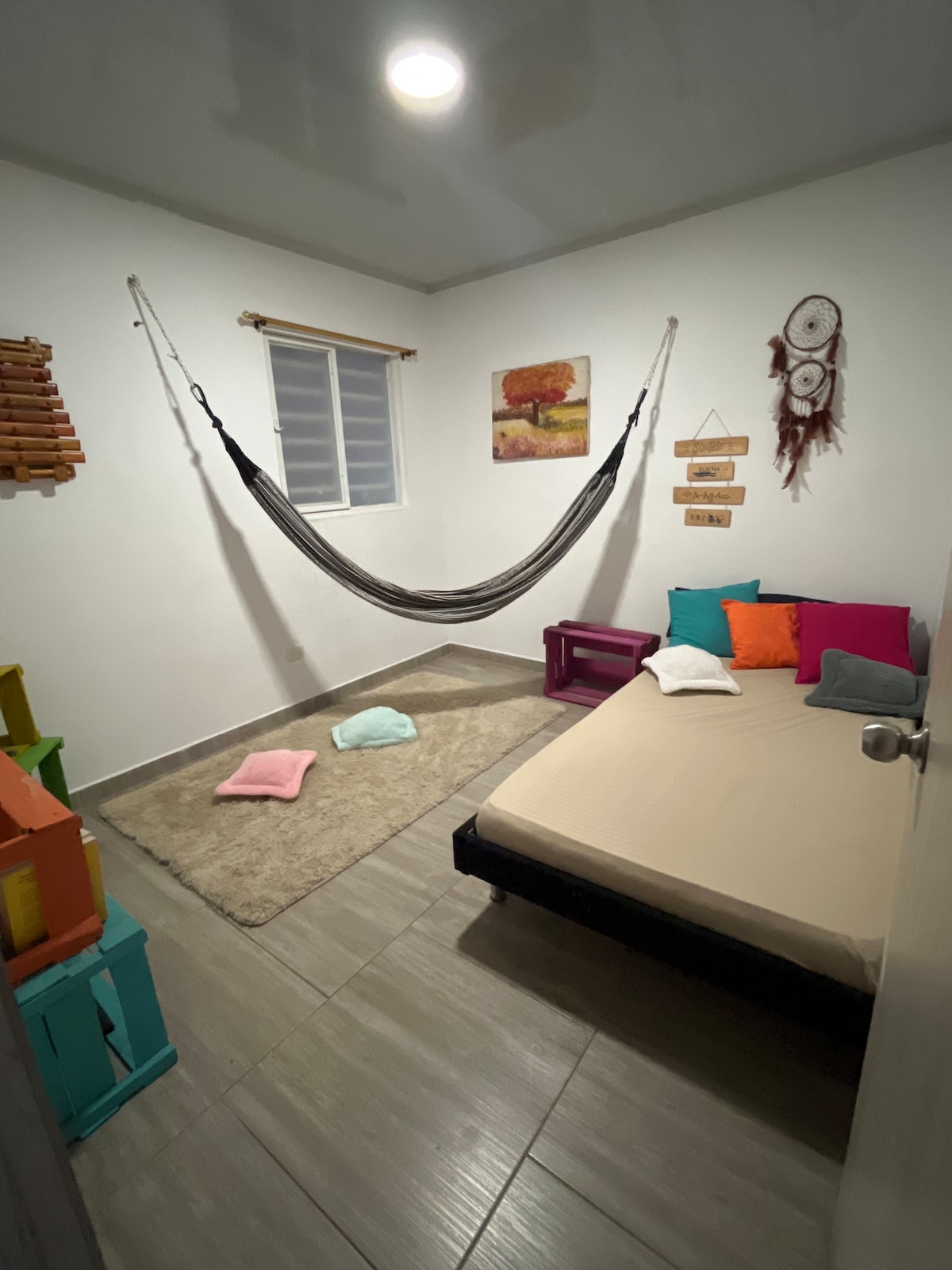 Confortable y acogedor espacio para disfrutar de un pueblo mágico "Roldanillo", el apartaestudio cuenta con una habitación; cama doble (140cmx190cm) adicional tiene una cama nicho (120cmx190cm), para un grupo de 3 personas, lencería impecable, closeth, ventilador, televisor con netflix, sofá, espejo, wifi, barra para servir tus alimentos y la cocina esta equipada con todos los utensilios y electrodomésticos. Ubicación cerca al Parque principal, sitio turísticos, deportes y alimentación.