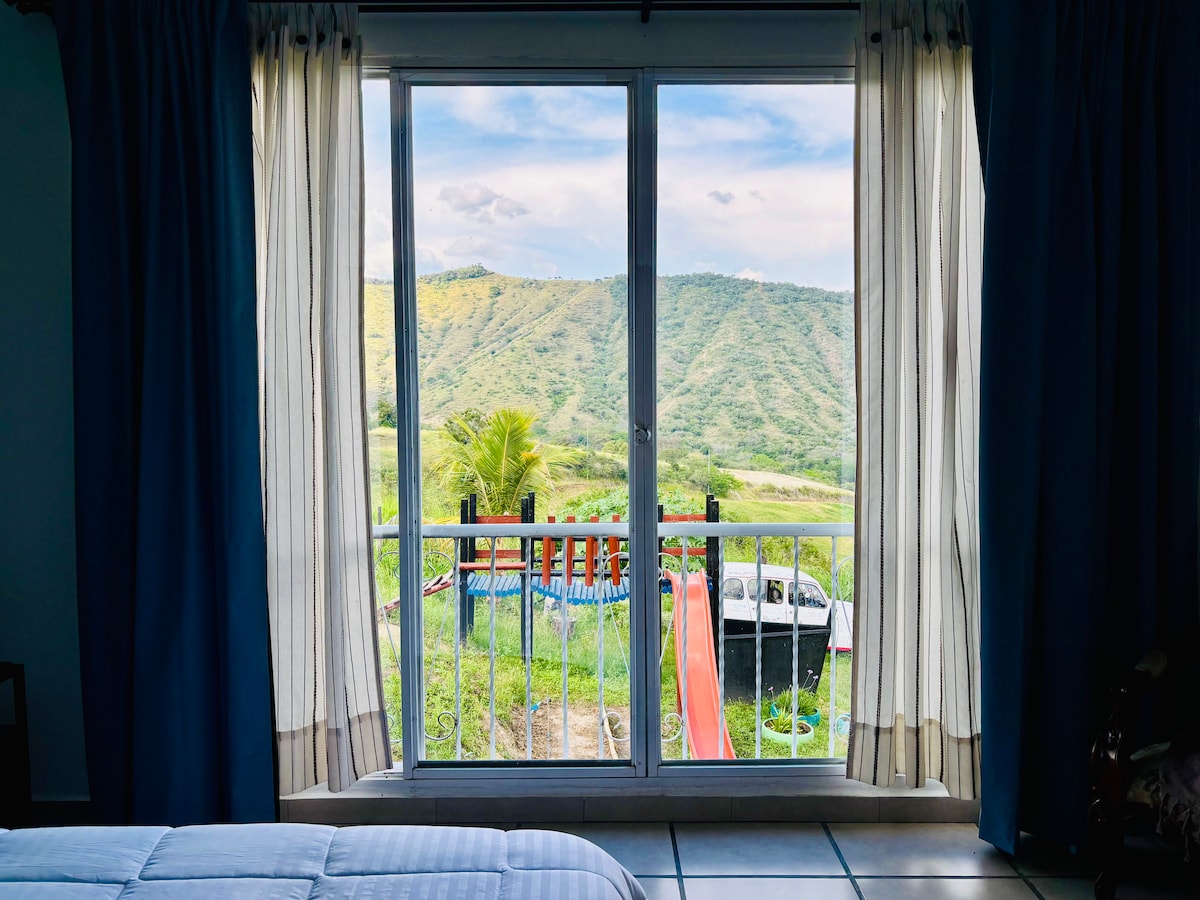 This spacious room for up to four people with a mountain view is located in Roldanillo, the top destination for Paragliding Competition in Colombia, and offers other attractions for visitors such as hiking, trail running, walking to the waterfalls, and driving on four tracks, horse riding. As well, this town is known for the Museo Rayo A unique stay with spectacular mountain views creates a peaceful and relaxing atmosphere. Ideal for friends or families seeking comfort and nature in Roldanillo.