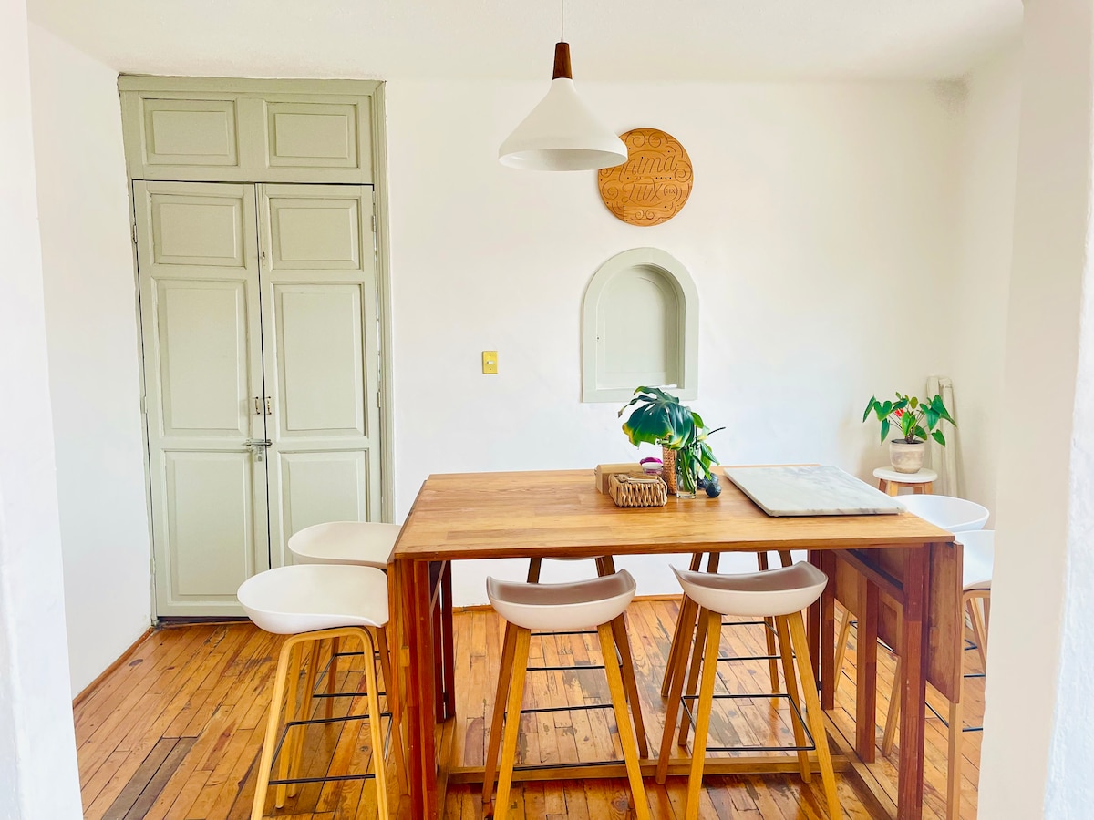 Our studio, in a renovated century-old house, blends the old and the new with rustic elegance. With Mexican details and contemporary comforts, it offers an authentic and cozy experience. It includes a queen bed, 50" TV, fast wifi, and fully equipped kitchen. Located in a vibrant area of Mexico City, close to shops, restaurants, and public transportation, with an Ecobici station across the street.