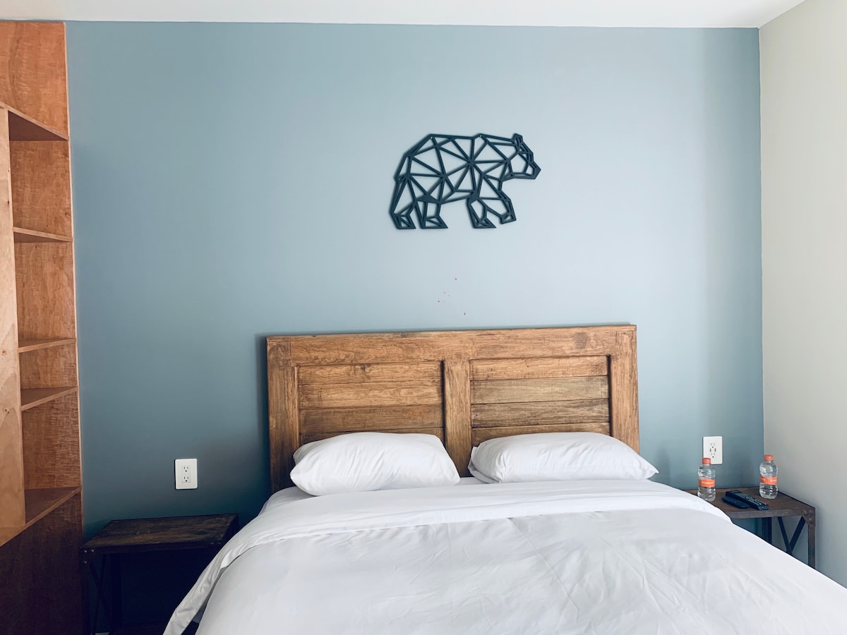 Hotel type double room for leisure or business. Open black out curtains to let morning sunlight fill this modern space and prepare yourself a coffee or tea to start your day. Sleep in a comfy Queen bed, and relax in the sofa watching the smart TV with complementary Fast wifi / Private bathroom with all organic soap/shampoo and AC. Shared kitchenette and laundry Must submit to enter the property: - Number of guests - Must sign our internal agreement (house rules)