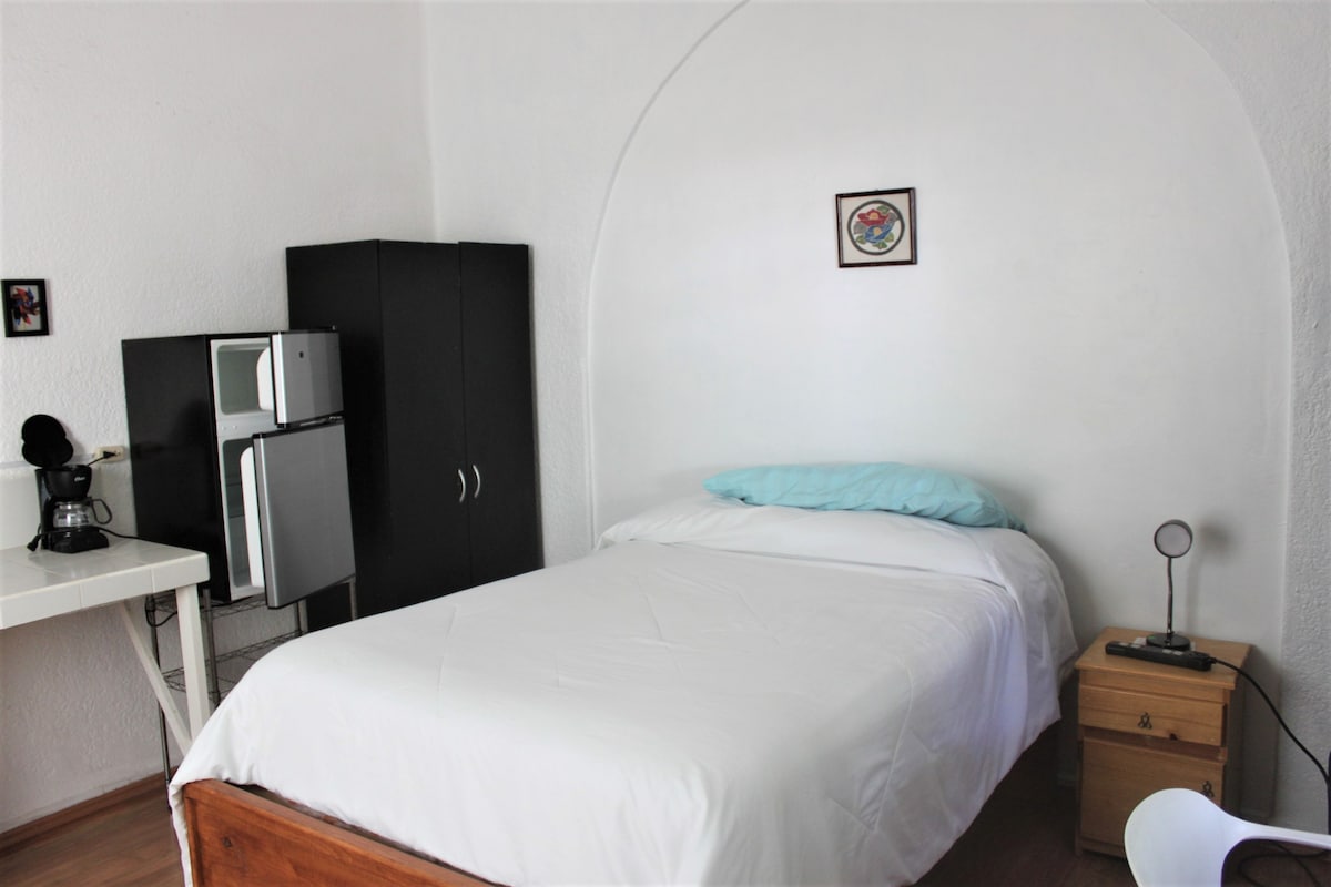 Discover elegance and comfort in our 325-square-foot studio in the heart of Roma Norte and Condesa! Immerse yourself in an oasis of personal style with understated and modernist decor. Enjoy a comfortable king-size bed with cotton sheets and a seamlessly integrated, minimalist-designed bathroom. Located within a historic property with a tranquil interior courtyard. Ideal for art enthusiasts and lovers of sophistication. Book now and experience a unique stay in Mexico City!