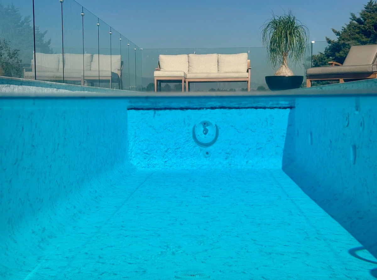 Ideal for home-office, great balcony and high-speed wifi 60Mbps ↧ 5.90 ↥ Enjoy the view of the volcanoes on a clear morning from the balcony of this bright apartment. The unit is specially designed to make your visit the most comfortable, surrounded by modern art and unique details. The building has high security 24/7 and incredible amenities: a swimming channel, well-equipped gym, pool table, ping pong tables, sauna, Jacuzzi, and exterior terrace for you to relax and enjoy sunny Mexico City