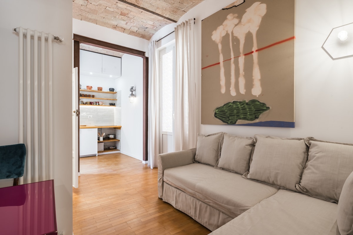 Brand new independent apartment for up to four guests in the authentic and vibrant San Lorenzo district located on the ground floor of a historical building. It is fully equipped for spending the most comfortable stay in Rome, like at home! It features one bedroom - double bed and smart TV - a bathroom -washer, dryer and all beauty essential- a modern 'Miele' kitchen and a living area with a sofa bed and Smart TV. Restaurant, stores, and public transport at walking distance. Free streaming apps!