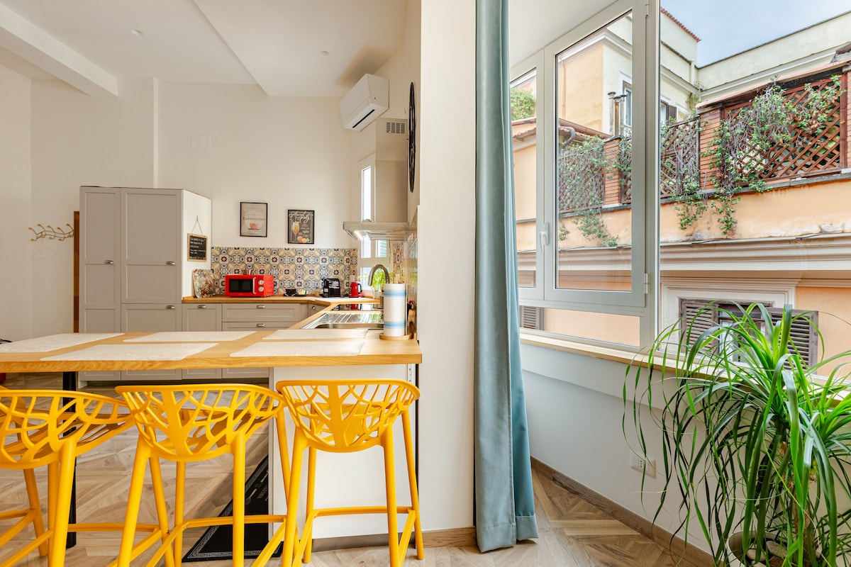 Experience Rome like a local from this bright studio apartment located in the heart of the city, 250mt from the Colosseum and the Roman Forum. Our newly renovated urban-chic studio offers a cosy and modern space to unwind and relax, and will be your base to explore Rome - all the major attractions are within walking distance! What you will love: - Fully renovated in 2022 - Upscale contemporary decor - 1800s brick ceiling - Historical building - Traffic-free street, very quiet