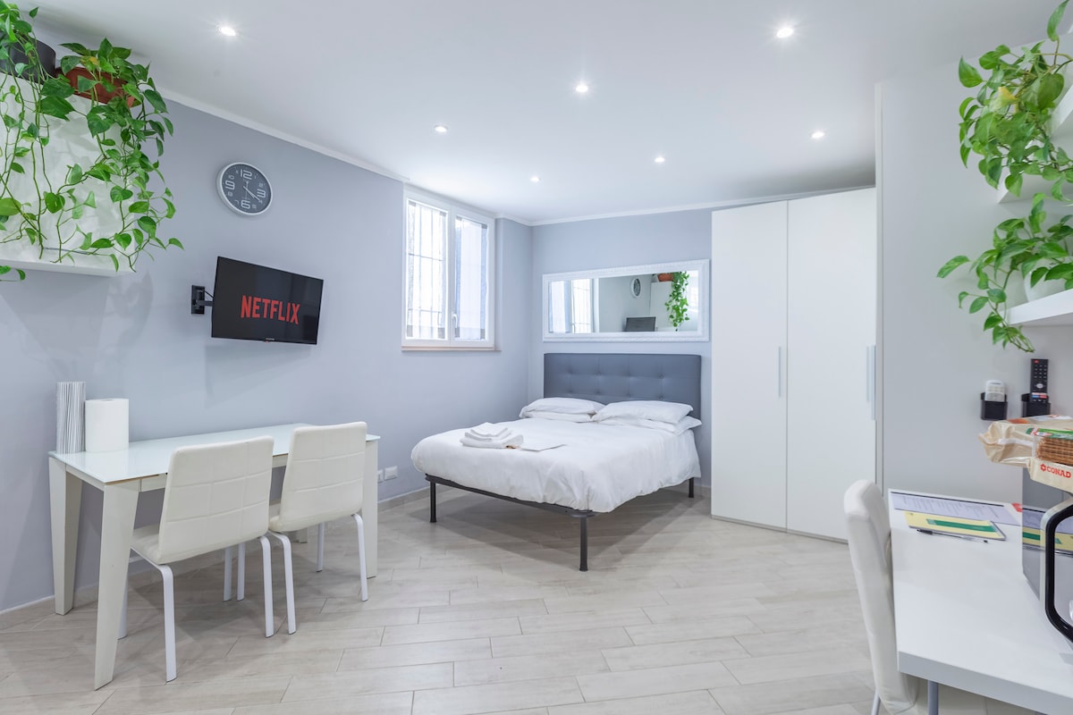 Top floor sunny central location, 5-star hotel service. 300 meters from Garbatella Metro Station & Ostiense train, and just a few minutes' drive from the Colosseum. Newly renovated luxury with air conditioning, Wi-Fi, and Netflix. Towels, coffee, tea, and all amenities included. "Garbatella, a picturesque and safe neighborhood well-connected to the city center, boasts a lively scene of characteristic restaurants and pubs. An ideal locale to explore Rome with style and convenience."