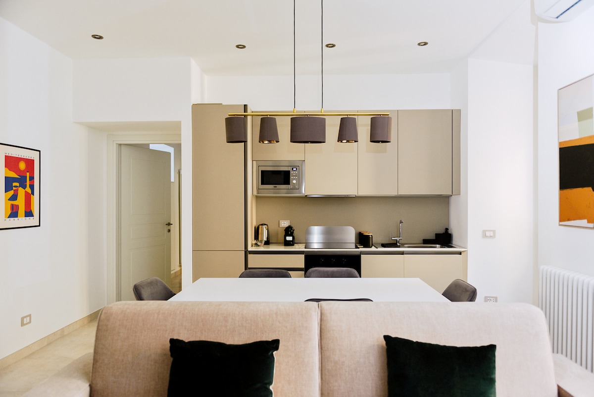 Nestled within a historic building facing one of the most iconic squares in the world, this one-bedroom apartment is located on the first floor and boasts modern amenities and an enviable patio, perfect for alfresco dinners. Ideal for couples or small families, the apartment features top-notch A/C system in all rooms, multi-room wireless sound system, steam bath as well as bathtub . Step outside the front door to toss your coin and immerse yourself in the lively atmosphere of the city center.