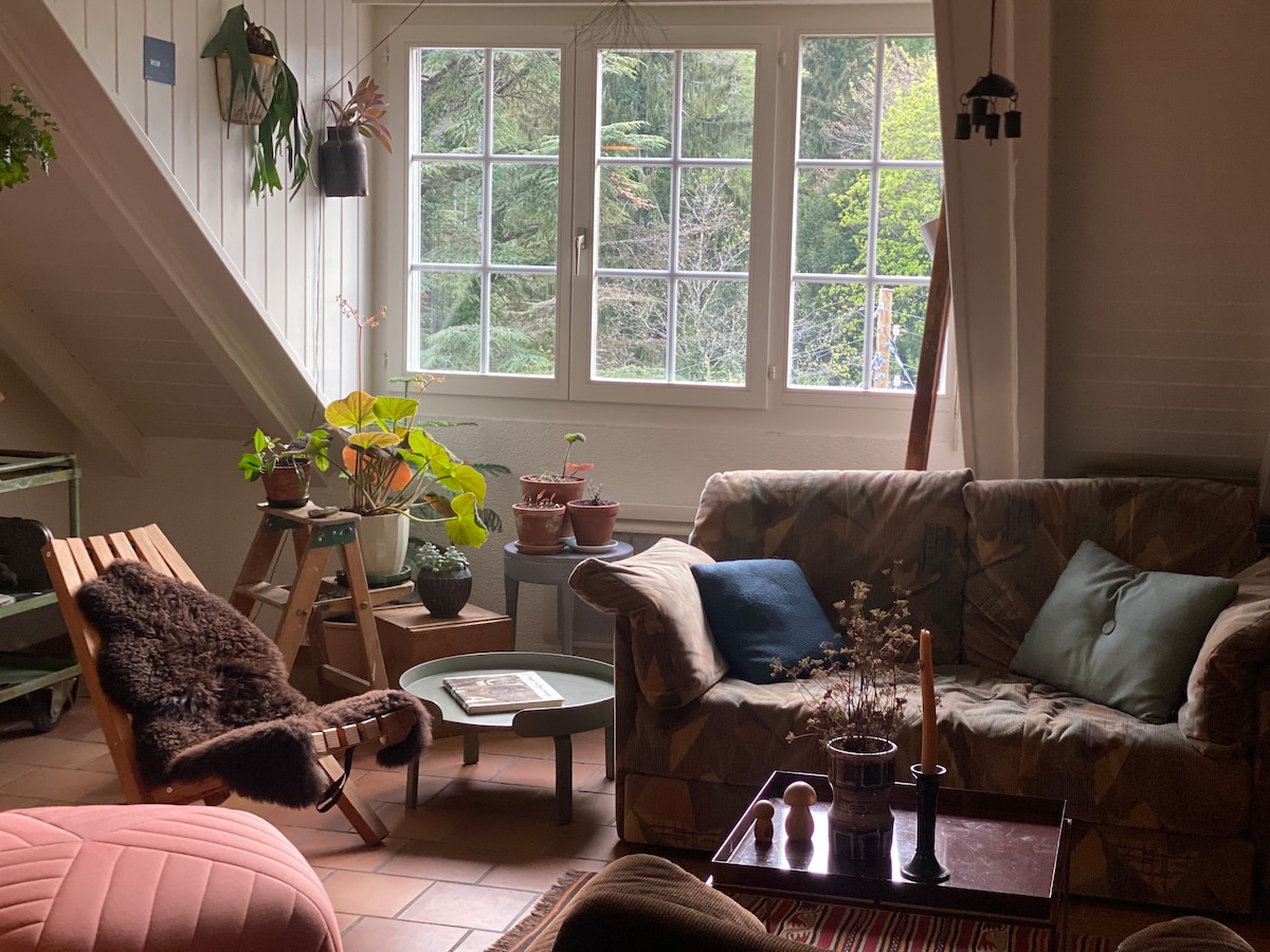 Notre maison se situe au coeur d'un village de campagne, à 20 minutes de Lausanne, au pied du Jura. L'appartement est au 2 ème étage de la maison dans laquelle nous vivons. Bus à proximité. Petits commerces à proximité. Nombreuses possibilités de balades, excursions et visites de musée.
