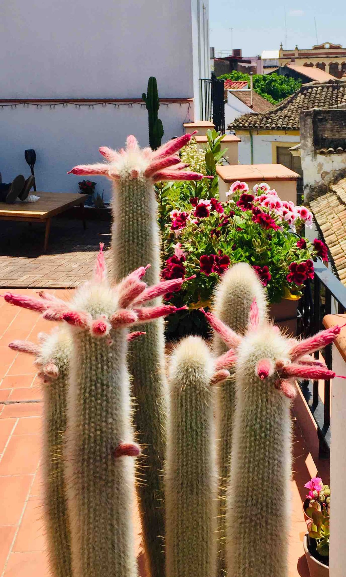 The penthouse is located in the Old Town, only two minutes away from the Mezquita, Alcázar and Sinagogue. It's on the top floor of an ancient palace. From the living room, the main room and the terrace you will be able to enjoy breathtaking views to the Mezquita. In that huge terrace you will be able to have breakfast or dinner while hearing the Cathedral bells, enjoying Córdoba nice weather. Don't miss the sunset while looking at the Mezquita tower. It's perfect for a romantic stay at Córdoba