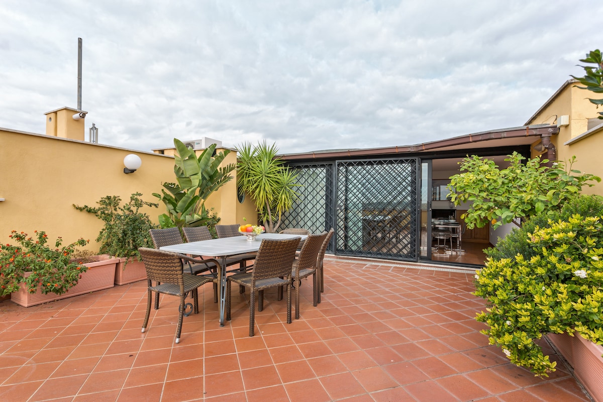 Charming penthouse few steps from the Coliseum, in the historic center of the city, overlooking the roofs of Rome from which you can admire a amazing panoramic view. Special location, for the lone traveler, for the artist in search of inspiration, for the professional who wants a home away from home, for the couples looking for a cozy retreat, for those who wants a holiday in a quaint place in the throbbing heart of Rome! Easily reachable, 40 m from Cavour, ONE stop by Termini Station. Just try!