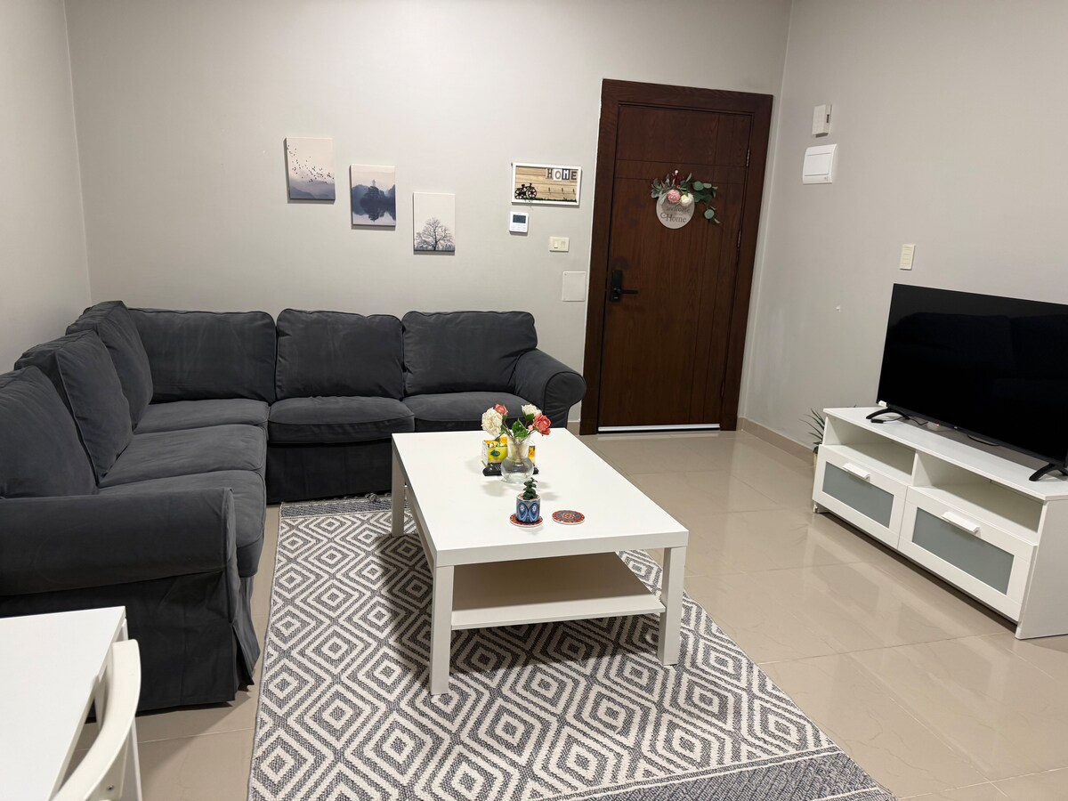 Getaway to a cozy and modern apartment in the heart of Amman. The apartment features a comfortable king-sized bed, 4 single beds , a new kitchen, and a modern bathroom. Enjoy the beautiful view of the city from the balcony. “We are in a families building so we have to be extra polite and considerate “ -on the first floor , without elevator. Please no noise or smoking or alcohol Thank you.