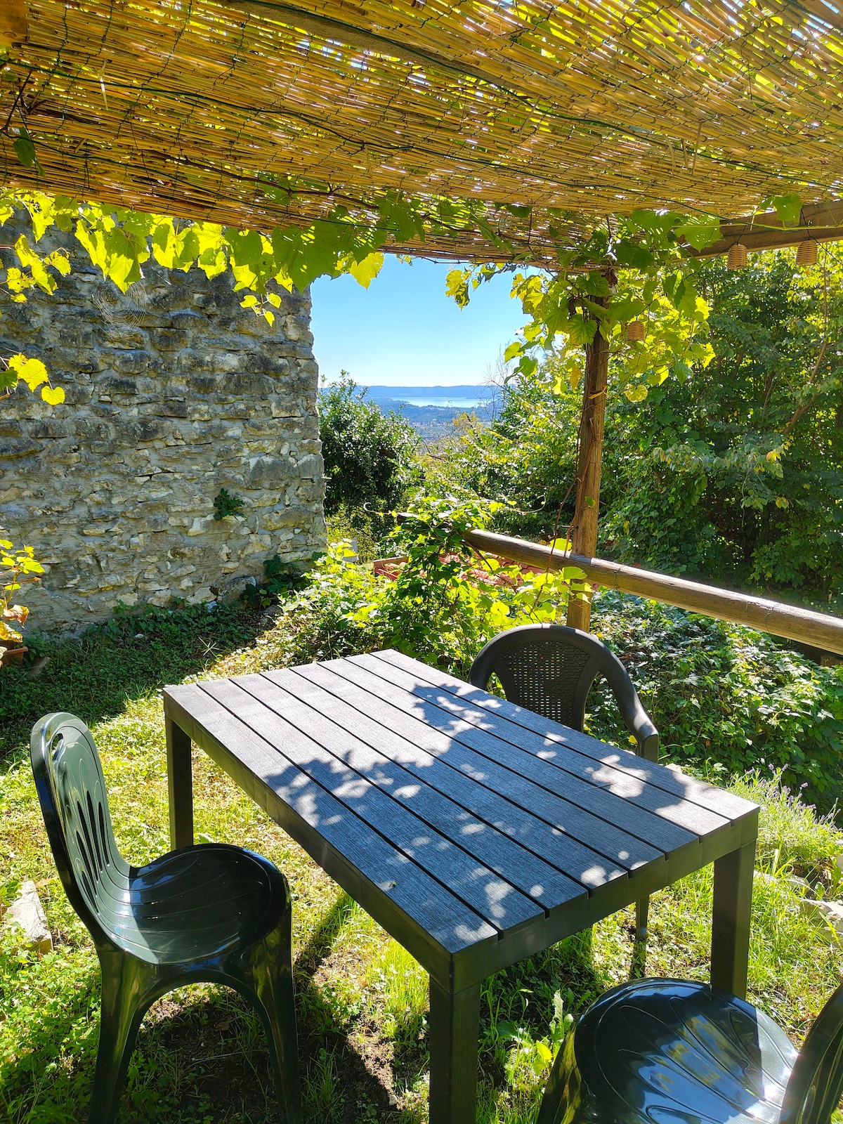 c'est comme un endroit secret cette petite maison posée à flanc de colline avec une vue merveilleuse sur le lac complétement indépendante, construite à l'entrée de la propriété, elle est sans vis à vis, avec un confort haut de gamme, une grande terrasse de 70m2 avec un spa privatif, sous abri, ayant en ligne de mire le lac. Cette maison est uniquement pour 2 personnes adultes sans enfant (aucun rajout de personne supplémentaire n'est possible).