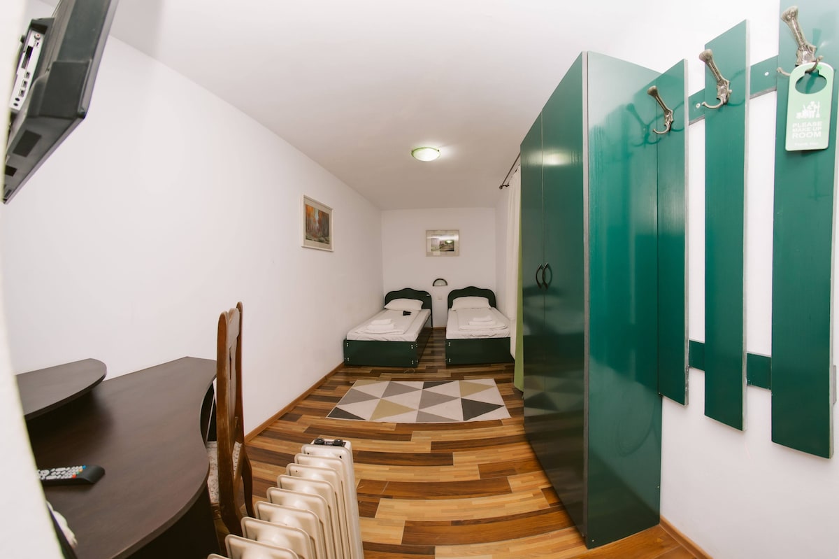 A quiet location set up in the old town of Brasov. It has a beautiful panoramic view of the old town, Schei Brasovului. We are located at 1500 meters from city centre. Black Church, the First Romanian School, Old Town Square and Old City Hall (now is a history museum) and a lot of other points of interest are in the area. The ski resort Poiana Brasov is at just 15 minutes away by car or you can take a hike on the old road and you will get there in 80-90 minutes