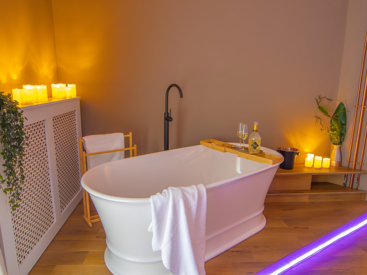 Urban Deluxe on Calea Victoriei, Bucharest city center: premium modern apartment on the city’s main boulevard, with a private glass sauna in the living room, a freestanding bathtub in the bedroom and ambient lighting for a romantic vibe. Sleeps 4 (queen bed plus sofa bed). Fast 1 Gbps Wi-Fi for workation, Smart TV, fully equipped kitchen, balcony, washer and dryer, easy self check-in. Walk to Old Town, Romanian Athenaeum, museums, metro, restaurants and cafes in minutes. Everything is walkable.