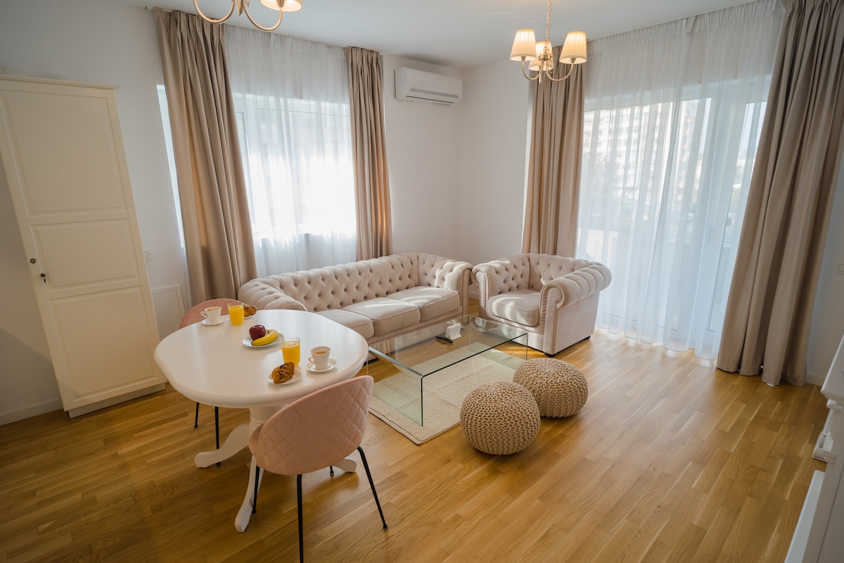 Welcome to your ultra central apartment in the heart of Bucharest. This exquisite apartment situated in Prince Residence at Principatele Unite 42, is offering the perfect blend of minimalist design and contemporary comfort. The apartment features a queen size bed, a lliving room with sofa bed, a fully equipped kitchen and a bathroom. Bed linen and towels are washed and ironed by a specialized company. The apartment is cleaned after each stay.