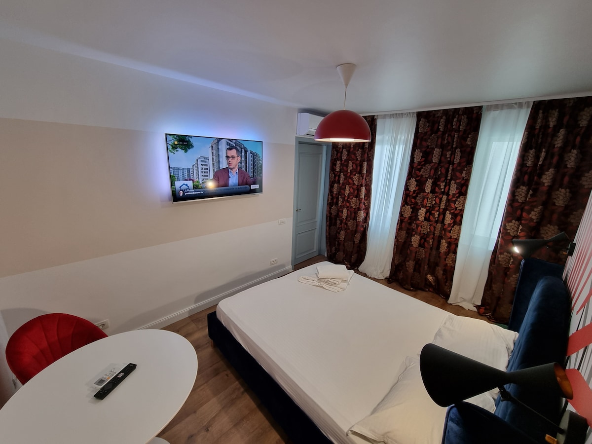 The apartment has 3 bedrooms with 3 ensuite bathrooms and a fully equipped kitchen. Situated in a historical building, baroc style, in the most beautiful square in Timisoara, Unirii Square, this place will give you everything you need! From all the bars, cafés, restaurants, just literally downstairs, to all the ameneties you need, like A/C, TV with Netflix and HBO Max to be sure you have a nice rest and enjoy this beautiful city!