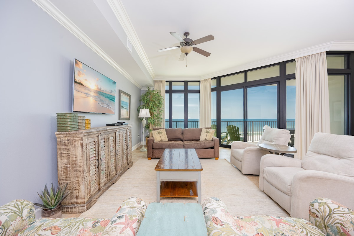 Enjoy your vacation in style at this centrally-located, beach front condo. This Gulf front corner unit has a gigantic balcony w/ plenty of space for dining, sunbathing, people watching & taking in the spectacular white sand beaches & sparkling sea! With all new furniture & decor, you'll be greeted to the famous Gulf beaches in style & comfort. Each bedroom enjoys balcony access. Bluewater is close to many of the fabulous restaurants Orange Beach is known for & only 5 mins from Gulf State Park!