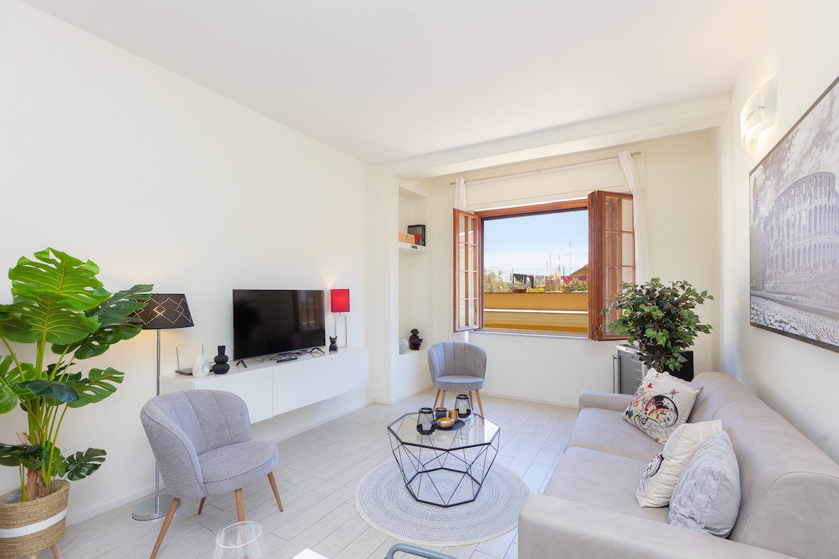 This beautiful bright and exclusive top floor is the apartment-studio of a Roman art collector. It is located on the 1st floor of a typical building situated in a quiet street just right in the heart of Rome only walking distance from Vatican and the main attractions of the city. It was recently renovated and has all the amenities needed for a perfect stay. The strategic location taken to create a cozy and hospitable atmosphere, make this apartment the ideal starting point for a pleasant stay in Rome. The terrace is fully furnished and offers a quiet and pleasant atmosphere away from the noise This beautiful bright and exclusive top floor is the apartment-studio of a Roman art collector. It is located on the 1st floor of a typical building situated in a quiet street just right in Trastevere only walking distance from Vatican, Piazza Navona and Campo de Fiori. It was designed by an architect with great care and decorated in a modern style by the owner, also works of contemporary art create a unique ambience and a pleasant atmosphere. The apartment consists of a large living room with skylight, a fully equipped kitchen, a double bedroom, a large bathroom, a beautiful terrace and a own parking. The private terrace is furnished with a gazebo, table and seats, sofa and barbecue corner and offers a quiet and pleasant atmosphere between the buildings away from the noise of typical Roman buildings, was recently renovated and has all the amenities needed for a perfect stay.It's strategic location and the care taken to create a cozy and hospitable atmosphere, make this apartment the ideal starting point for a pleasant stay in Rome. Ideal for 2/4 people, 2 people in the bedroom and 2 people on the sofa beds in the living room. Free wi fi available in all areas, terrace included. Free private parking. The terrace is furnished with a gazebo, table and seats, sofa and barbecue corner and offers a quiet and pleasant atmosphere between the buildings away from the noise of typical Roman buildings.Free private parking. The owner will not be present in the house during your stay but it will be at your disposal for any question or information you can contact them by phone. Check-in 14:00 – 24:00. If necessary, if the accommodation is vacant, it might be possible for you to check-in at an earlier time or deposit your luggage and come back at 14:00. Check-out is by 10:00. If necessary, if the accommodation is vacant, it might be possible for you to check-out at later time or deposit your luggage and come back at different time. Situated 100m from the Tiber, the home is a 5-minute walk to Vatican City, and to hip, vibrant Trastevere with its fascinating bohemian atmosphere. Explore the area’s foodie hotspots, quiet alleyways, street performers, and thriving nightlife. How to reach me: From Fiumicino Airport Leonardo da Vinci the connection is guaranteed by the LEONARDO EXPRESS train with departures scheduled every 15 minutes to TERMINI station. The travel time is estimated at just 40 minutes, train ticket cost €12, or by the FL1 train with departures scheduled every 15 minutes from TRASTEVERE station. The travel time is estimated at just 27 minutes, ticket price is €8. By car can be reached in 30 minutes.The cost of the official white taxi is fixed rate of € 48. From Ciampino Airport G.B. Pastine there are several companies that connect the airport to Termini Station. The ticket price ranges from euro 4 to euro 8 for single travel time is estimated at 40 minutes. By car it is 30 minutes.The official white taxi cost is fixed rate of € 30. From Termini Station easily accessible by bus line 40 (direction TRASPONTINA/CONCILIAZIONE) for 5 stops and get off at the stop CHIESA NUOVA, just walk for 700 mt.Bus ticket cost €1,50. From Trastevere Station easily accessible by tram line 8 (direction VENEZIA) for 6 stops and get off at the stop BELLI, just walk for 950 mt.Bus ticket cost €1,50.