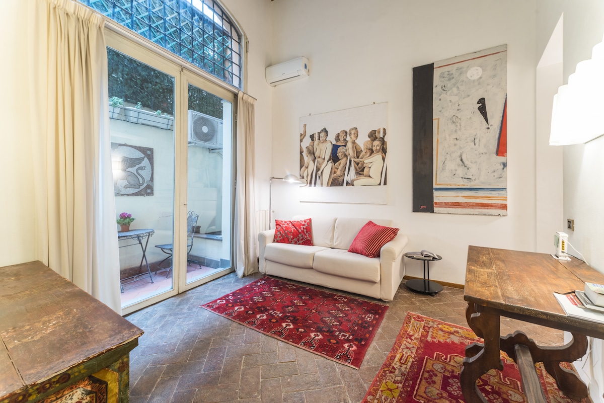 In the heart of historical Rome, close to Portico d'Ottavia and Piazza Venezia, the loft is located in an ancient renovated stable belonging to a XV palace (Palazzo Lovatelli). The loft has been redesigned by an architect and is often the residence of artists who have contributed to the artworks in the loft, and who work for the nearby Street Art Gallery, Galleria Varsi. It is perfect for a family of four or for a couple wishing for a romantic setting for their stay in Rome.