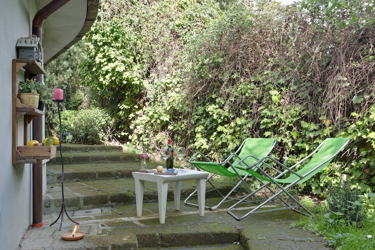 A Villa with private garden located in the heart of the city: the Pigneto quarter, famous for its vital and energetic character. Crossroads for people looking for inspiration. In our home you'll experience a feeling of wellness and lightness, in an atmosphere of primary contact with nature, thanks to the trees and to our chicken who every day provide fresh eggs. We take care with great pleasure of our guests: couples, loners and business travelers are all welcome in our dependence.
