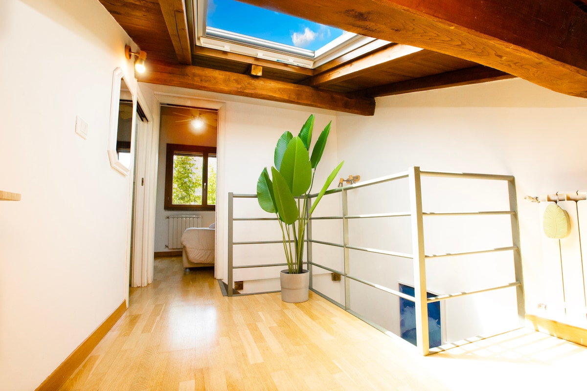 Suede Loft Retreat is more than just a stay: it’s an urban retreat where time slows down. Immersed in greenery between the parks of the Appian Way and Tormarancia, it welcomes those seeking an authentic, peaceful, and human-scale Rome. Every detail – from private parking to the independent entrance, from warm furnishings to natural light – is designed to make you feel free, without giving up comfort and connection to the area.