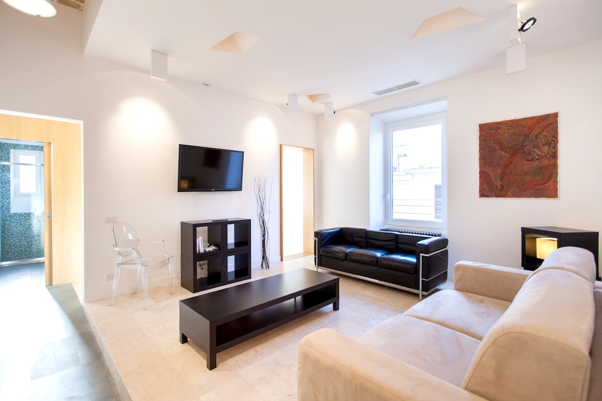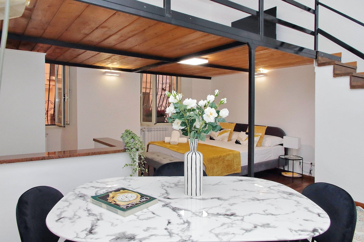 On the top floor of an old Palazzo in the heart of Ancient Rome, Atticus luxury is ideal for couples, singles, or friends. This elegant Studio exceeds all amenities you'd expect from a 5 stars hotel: welcomes you with Prosecco, Breakfast stored items, and Salvatore Ferragamo toiletries. Comfort, Elegance and Privacy for an amazing staying few minutes walk to the Coliseum & the Trajan Forum. Romance also in a glass of wine on the balcony overseeing the city centre and the Roman Forum on its side.