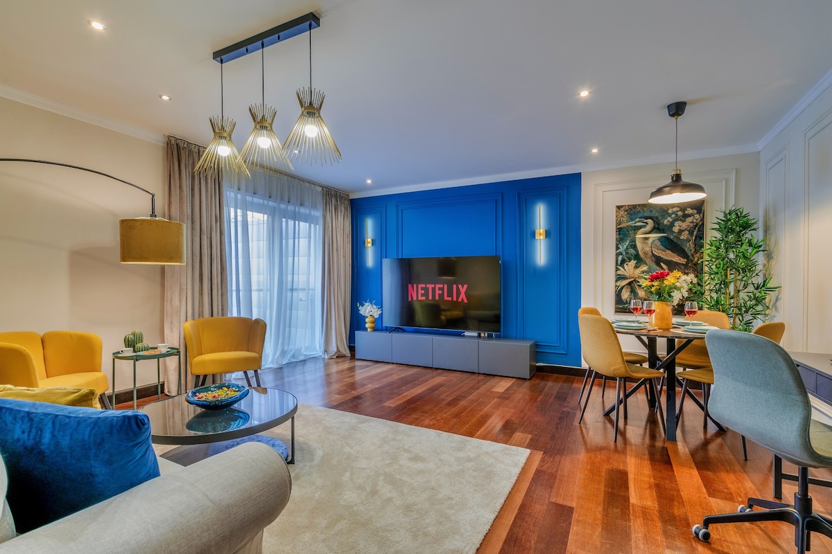 Discover a touch of luxury in our newly finished 2022 apartment, thoughtfully designed by top interior designers. This 2-bedroom flat offers a blend of modern elegance and comfort, ensuring a memorable stay. Conveniently located within walking distance to Romexpo, you're perfectly positioned to explore and enjoy Bucharest's attractions. Dive into a space where contemporary design meets homely warmth, making it the ideal retreat for your city escapade.